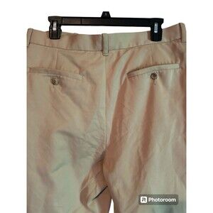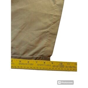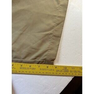 Upgrade your casual wardrobe with these Perry Ellis Portfolio Men's Pleated khaki colored 100% polyester in size 34. The shorts feature a solid pattern and a zip closure for a comfortable fit. Perfect for any casual occasion, the beige color and slash pockets add a stylish touch to your outfit.