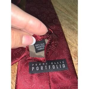 Perry Ellis Portfolio Men's Red Paisley Silk Tie Classic Width Necktie
