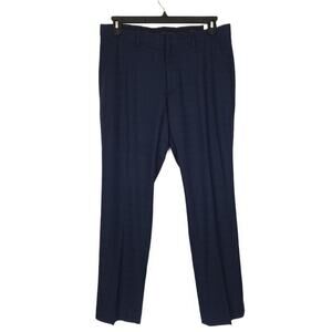 Perry Ellis Portfolio Men's Slim-Fit Stretch Dress Pants Navy Plaid 33x30 NWT