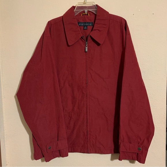 Perry Ellis Portfolio Men's XL Dark Red Burgundy Full Zip Jacket Windbreaker
