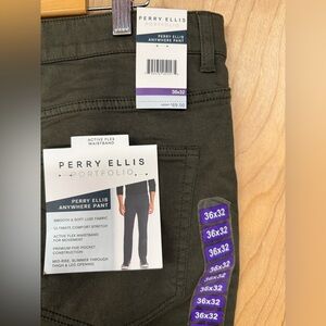 Perry Ellis Portfolio Pants 36x32 Men’s Soft Touch Chino Elmwood Forest Green