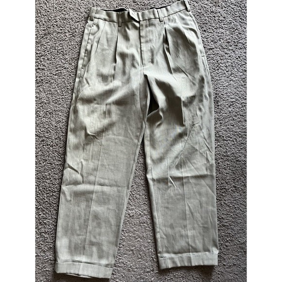Perry Ellis Portfolio Pleated Front Dress Pant Size 33x30 Cuffed Gray Nice