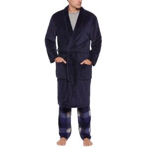 Perry Ellis Portfolio Plush Fleece Belted Robe Peacoat Blue One Size NWT