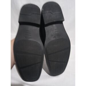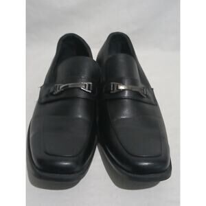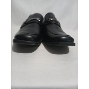 Great pair of black loafers from Perry Ellis portfolio in size 6. Per the tag they are called Brian GP and are made of all man-made materials. These black loafers are accented by a fixed strap adorned with a silver tone faux buckle. They are in lovely shape with very little wear.