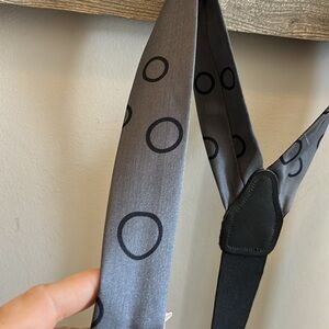 Perry Ellis Portfolio Suspenders Polka Dots Leather Fasteners Brass Clips Gray