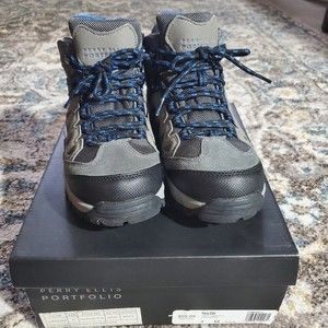Perry Ellis Portfolio Waterproof Hiking Boots Size 4, color Charcol/blu…