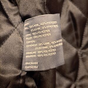 Shell: 50% Wool, 42% Polyester, 5% Rayon, 3% Other fibers