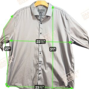The Perry Ellis Premium Mens Deep Grey Slim Fit Non Iron Stretch Dress Shirt in size XL is a classic and versatile piece suitable for casual, workwear, and business occasions. Made from 100% cotton fabric, this dress shirt features a collared neckline with a spread collar style, long sleeves, and a button closure. It offers a slimming fit and is designed for easy care, being wrinkle-resistant and breathable. The shirt is lightweight and non-iron, making it suitable for all seasons and adding convenience to your wardrobe. With its solid color and mitered cuff, this shirt from Perry Ellis is a stylish and practical choice for the modern man.