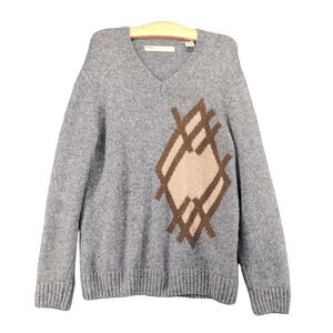 Perry Ellis Pullover V-Neck Sweater Mens Medium Long Sleeve Gray Knit Wool Blend