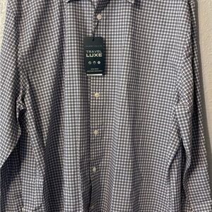 Perry Ellis Purple and White Casual Button Down Shirt