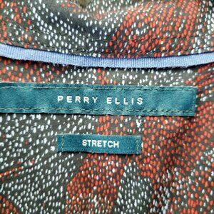 Perry Ellis Shirt Mens 2XLT Red & Black Print Long Sleeve Button-Up Stretch