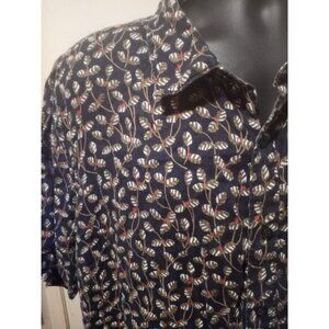 Perry Ellis Shirt Mens 3X Blue 100% Linen Floral Beach Summer Short Sleeve
