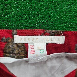 Perry Ellis Shorts Mens 32 Red Chino Sea Turtle All Over Print AOP Summer Beach