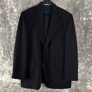 Perry Ellis Size 46 XXL Career Notched Blazer Jacket Black Long Sleeve Button