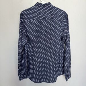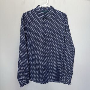 Perry Ellis | Slim Fit Blue Abstract Retro Floral Dot Long Sleeve Button Shirt L