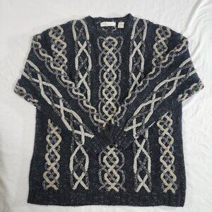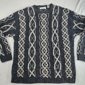 Perry Ellis Sweater Men's XL Gray Vintage Hand Knit 3D Chunky Cable Knit Pullover 80s 90s