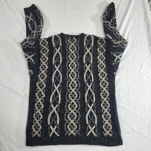 Perry Ellis Sweater Men's XL Gray Vintage Hand Knit 3D Chunky Cable Knitted
