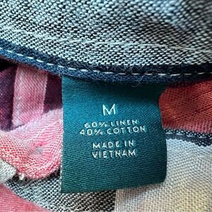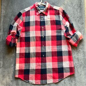 Perry Ellis Sz M Linen Cotton Blend Plaid Red Long Sleeve Shirt Button Down