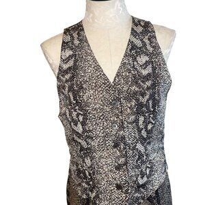 Perry Ellis Vintage Womens Skirt Set Size 6 Gray Snake Print 3 Piece Pure Silk