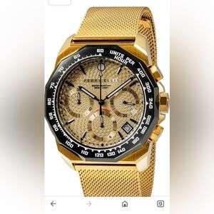 Swiss Quartz movement with date display and 3-sub dial: 24 hour clock, 60-minute timer and 60-second timer, keeping things precise.