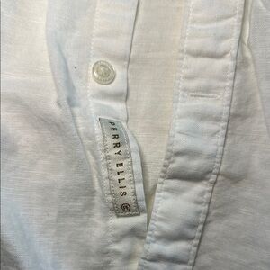Perry Ellis White Casual Button Down Shirt Crisp Cotton Short Sleeve