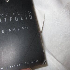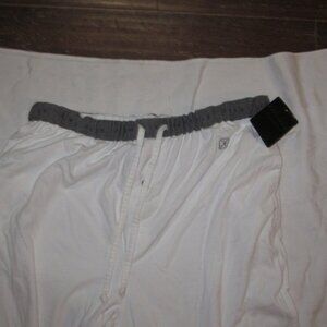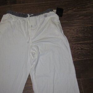 Comfortable Perry Ellis sweatpants. Features a gray elastic waistband and white fabric. Ideal for casual wear.