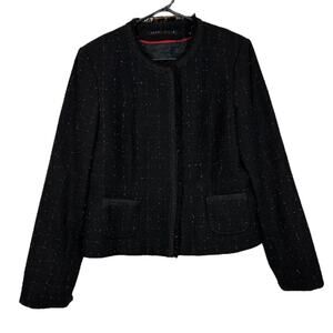 Perry Ellis Wool Blend Black & Pink Fringe Long Sleeve Blazer Size 14