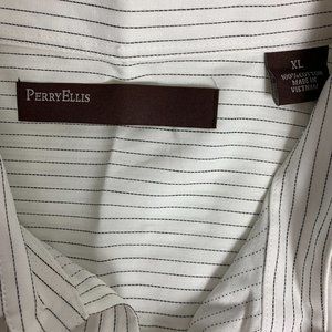 Perry Ellis XL Dress Shirt NWT White Black Stripe $70