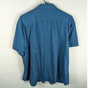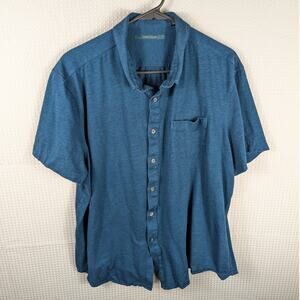 Perry Ellis XXL Blue Textured Short Sleeve Button Front Shirt 100% Cotton Men’s