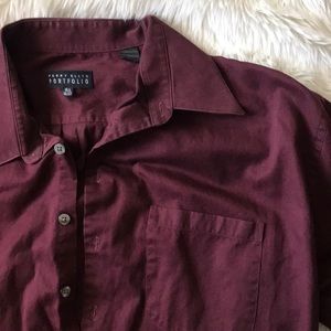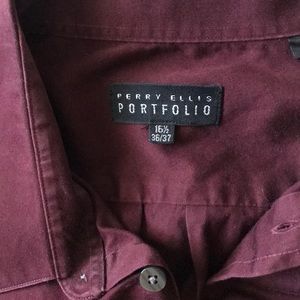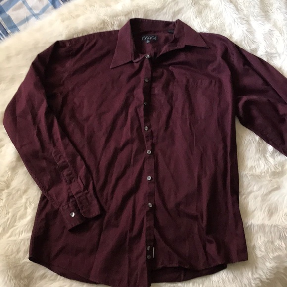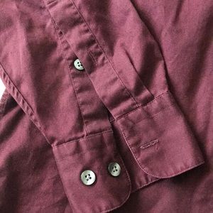 Eggplant color, long sleeve button down dress shirt. Single pocket