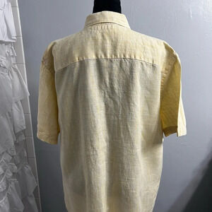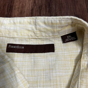 Perry Ellis button down top, size XXL. Yellow and white color, 100% linen. In good pre loved condition, no rips tears or stains.