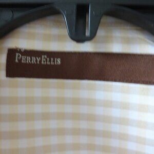 Perry Ellis button up men's short sleeve shirt, cream and tan, L, 100% cotton