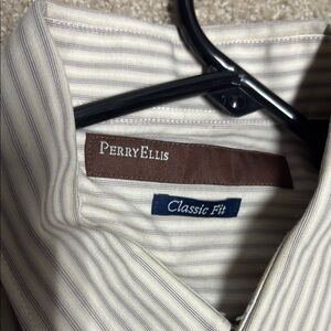 Perry Ellis classic fit Men's Striped Cream button down shirt size M