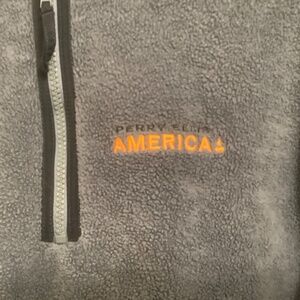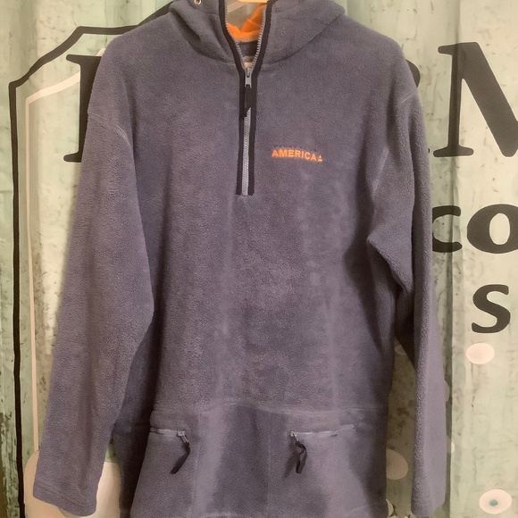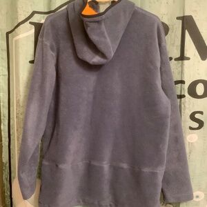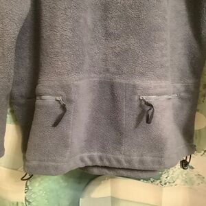 Sweater has 2 zip pockets. It’s warm and comfortable. Size large.