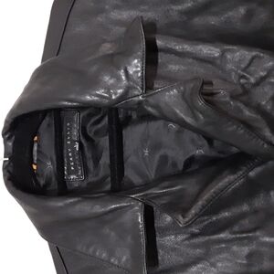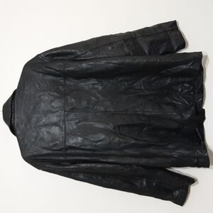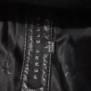 Perry Ellis men leather jacket pea coat in size L y2k black button down winter