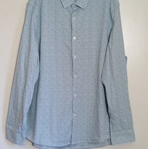 Perry Ellis slim fit blue/white floral pattern button down shirt men size XL