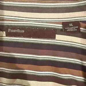Perry Ellis vintage brown & tan stripe long sleeve shirt. Size XL