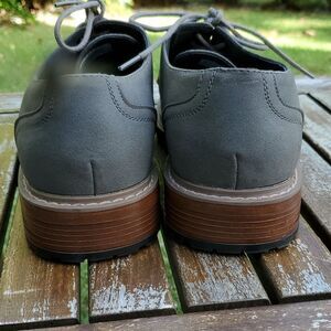 This is a pair of Perry Ellis Sterling grey oxford shoes. They lace-up. These shoes have only been worn a couple of times.