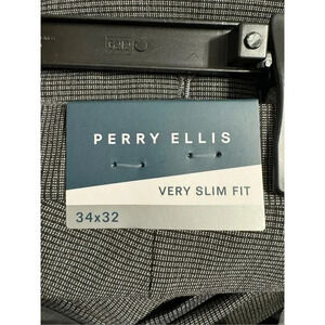 Perry Ellis Very Slim Fit Stretch Houndstooth Dress Pant 34x32 Gray Straight Leg