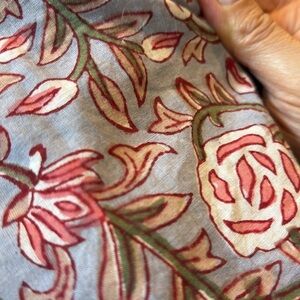 Perry Walker Collective Block Print Mini strapless dress. New with tags. Elastic ruched top with flowy ruffles at bottom. No size, fits like a small or medium. The elastic stretches to about 18” when flat. Gray background with pink/ red and a bit of green. Cotton.