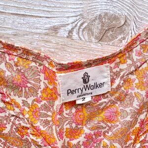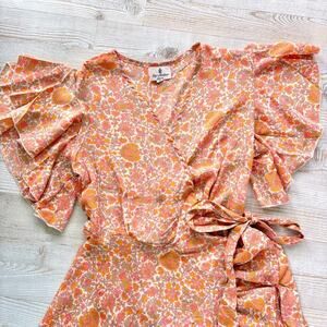 Perry Walker Collective Madi Mini Silk Ruffle Wrap Dress | Orange Floral Size 2