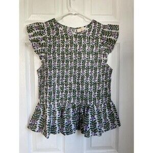 Perry Walker Collective Shirt Womens 3 The Penny Blouse top green Floral Button