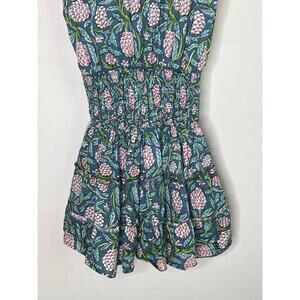 Perry Walker Virginia Floral Flutter Sleeve Smocked Mini Blouson Dress Green 1/S