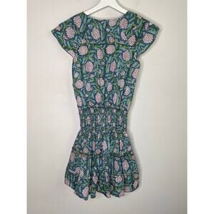 Perry Walker Virginia Floral Flutter Sleeve Smocked Mini Blouson Dress Green 1/S