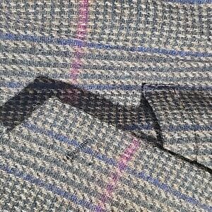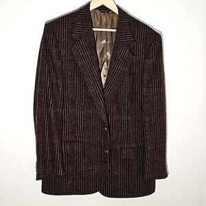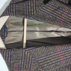 This fabulous wool blazer is so cool. Fabric was woven in Scotland. Great plaid colors red, blue, green, tan. Very good used condition and quality. I believe that it may be a 46R. Pit to pit flat measurement is 25". Shoulders are 21". farms from shoulder to wrist is 25". Pit to wrist is 17". The top to bottom length is about 31". Consider making a bundle and get an even better offer.