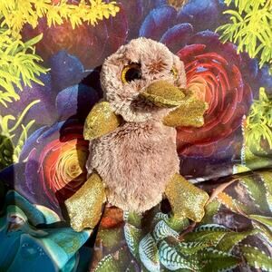Meet Perry the Platypus, a charming regular small-sized Ty Beanie Boo plush in excellent used condition! This adorable platypus features soft, brown fur with glittery golden accents on his beak, feet, and wings, making him a sparkling addition to any Beanie Boo or stuffed animal collection. Perry is perfect for fans of unique and whimsical plush toys or anyone looking to add a touch of fun and sparkle to their décor. A perfect gift for kids, collectors, or platypus lovers!
