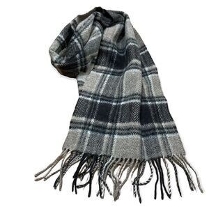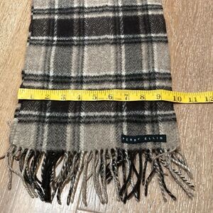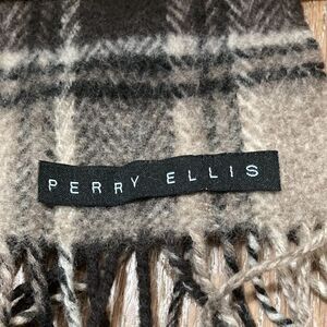 Perry Ellis plaid wool scarf. Measurements are approximately 10” x 58”. Good used condition. No flaws found