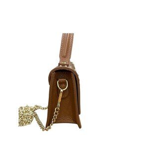 Persaman NY Pebbled Leather Mini Top Handle Crossbody Bag Brown Studded EUC