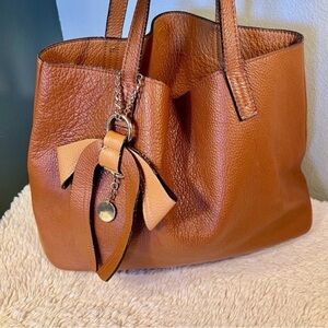 Very minimalist inside w/ cute Leather Bow and charm on the outside.