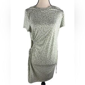 Persaya Plus Patch Work Green Floral Short Sleeve Midi Dress side cutout Sz XL